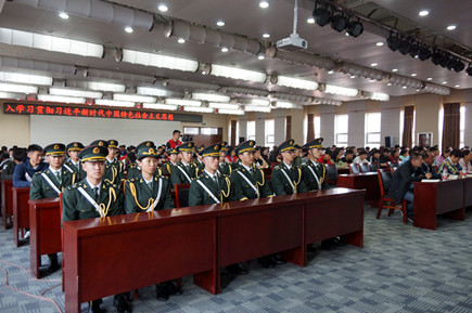 學院黨群工作部、學工處(團委)全體人員,各系黨總支書記、學工辦主任,院學生會全體成員、各系學生會主要干部,國旗班、軍樂團、青年馬克思讀書會、學生記者團學生代表等近400人現(xiàn)場聆聽了報告。