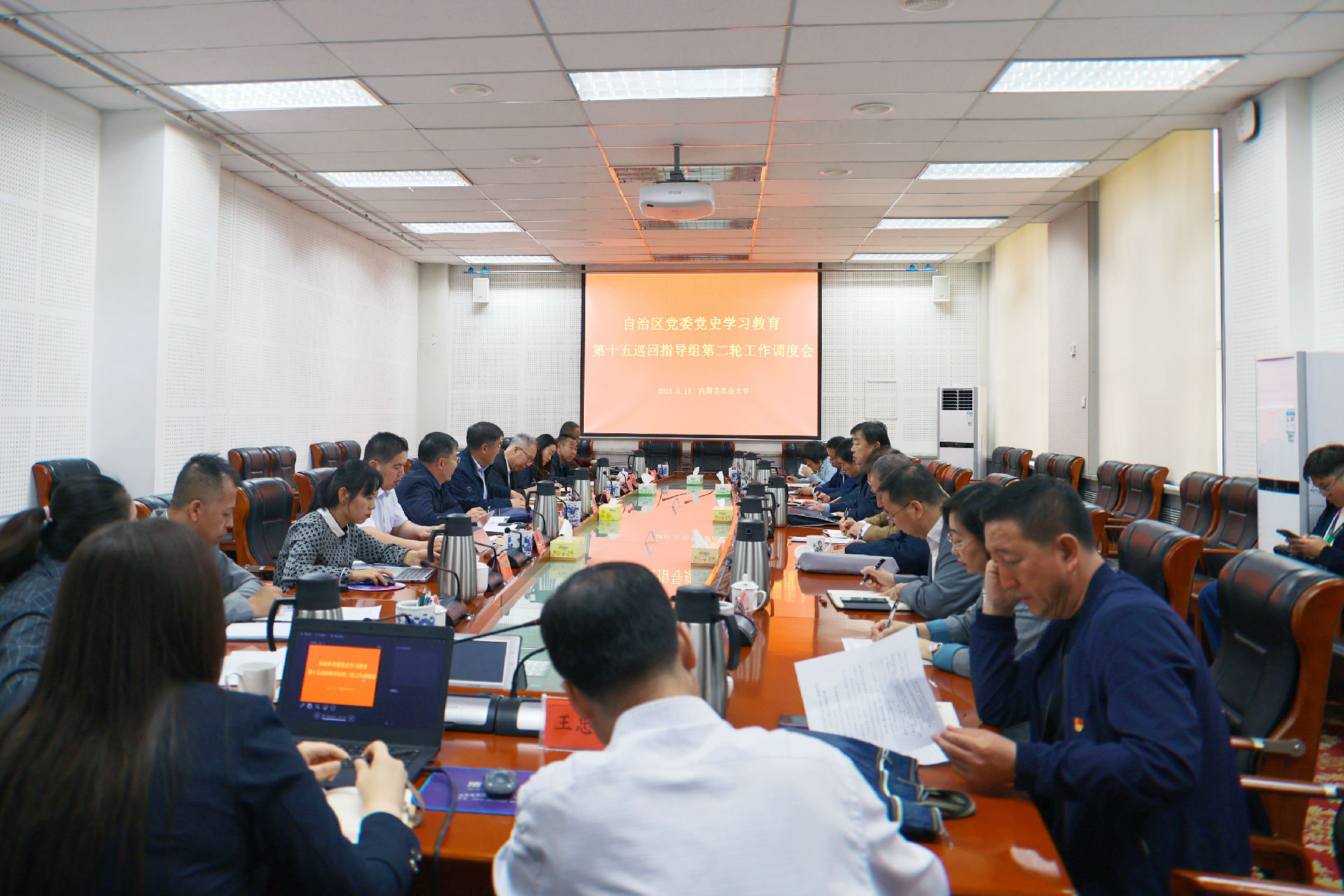 5月12日上午,自治區(qū)黨委黨史學(xué)習(xí)教育第十五巡回指導(dǎo)組第二輪工作調(diào)度會(huì)在內(nèi)蒙古農(nóng)業(yè)大學(xué)召開。會(huì)議旨在進(jìn)一步統(tǒng)一思想,明確下一階段工作任務(wù),通過(guò)各高校間分享交流,互鑒黨史學(xué)習(xí)教育好經(jīng)驗(yàn)、好做法。