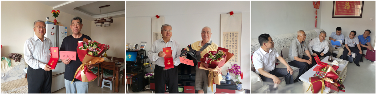 學(xué)院領(lǐng)導(dǎo)來到16位老黨員家中,為各位老黨員頒發(fā)了“光榮在黨50年”紀念章,并送上了慰問金。學(xué)院領(lǐng)導(dǎo)滿懷深情地說,在建黨100周年的特殊歷史時刻,黨中央首次頒發(fā)“光榮在黨50年”紀念章,這是以習(xí)近平同志為核心的黨中央對老黨員的親切關(guān)懷和尊崇厚愛,今天我們特意來向您們送上黨中央的關(guān)愛和溫暖,同時也表達我們對您們的崇敬之情。