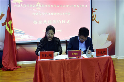 2019年5月30日上午,內(nèi)蒙古大學(xué)交通學(xué)院與內(nèi)蒙古高路公司烏蘭察布分公司校企合作簽約儀式在企業(yè)培訓(xùn)中心會(huì)議室舉行。內(nèi)蒙古高路公司烏蘭察布分公司總經(jīng)理關(guān)永成、黨委辦公室主任郝宗濤,學(xué)院黨委副書記、紀(jì)委書記白托婭和學(xué)院相關(guān)部門負(fù)責(zé)人出席簽約儀式。