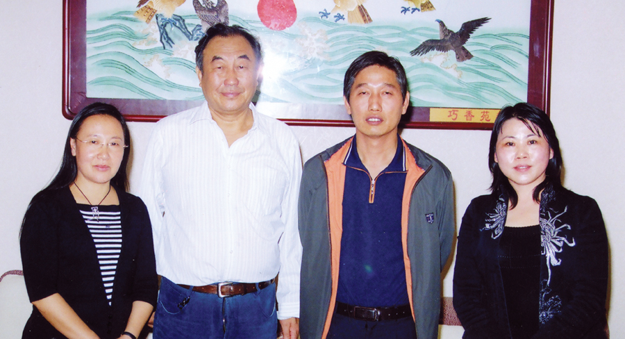 中國(guó)路橋集團(tuán)公路一局張冬菊副處長(zhǎng)(80年代畢業(yè)生、左一)、郁苗福副總工程師(60年代畢業(yè)生、左二)、弓天云公路一局局長(zhǎng)(80年代畢業(yè)生、左三)、張鳳玲高級(jí)工程師(80年代畢業(yè)生、左四)、兩代畢業(yè)生祝福母校五十華誕