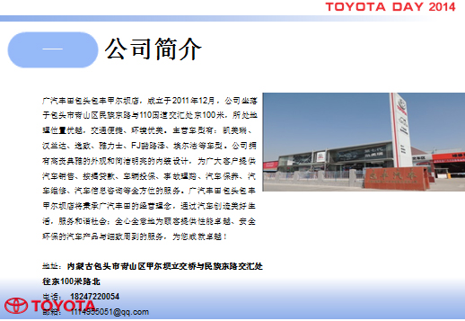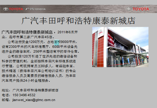 呼和浩特康泰豐田汽車銷售服務(wù)有限公司 |