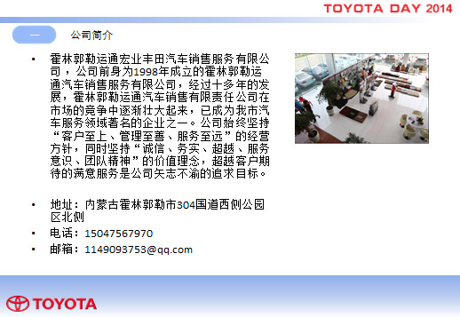 霍林郭勒運通宏業(yè)豐田汽車銷售服務(wù)有限公司 |