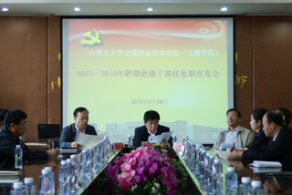 2015年9月28日下午,在交通樓A439會(huì)議室,校黨委召開交通職業(yè)技術(shù)學(xué)院(交通學(xué)院)2015—2018年聘期處級(jí)干部任免職宣布會(huì)。