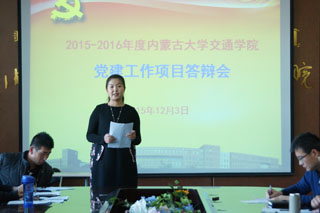 白托婭副書記結(jié)合新形勢下黨建工作,針對參加答辯會各項(xiàng)目組的陳述和答辯情況提出了具體要求:一是要深刻領(lǐng)會學(xué)院黨委實(shí)施黨建工作項(xiàng)目的目的和意義,積極落實(shí)黨建工作項(xiàng)目的實(shí)施及論證,努力探索黨建工作的新思路、新方法;二是要立足本職工作,深入細(xì)致的分析項(xiàng)目的實(shí)施步驟及預(yù)期效果,增進(jìn)黨建工作項(xiàng)目的可操作性;三是要通過黨建工作項(xiàng)目轉(zhuǎn)化一批新的理論成果,指導(dǎo)具體實(shí)踐開展;四是要通過黨建工作項(xiàng)目實(shí)施,不斷增強(qiáng)黨組織凝聚力和戰(zhàn)斗力,進(jìn)一步提升基層黨建工作水平,從而促進(jìn)學(xué)院各項(xiàng)事業(yè)快速發(fā)展。