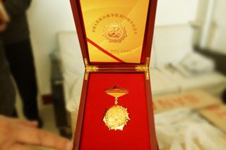 圖為離休老干部李成柏領(lǐng)取中央軍委頒發(fā)的“紀(jì)念中國(guó)人民抗日戰(zhàn)爭(zhēng)暨世界人民反法西斯戰(zhàn)爭(zhēng)勝利70周年”金質(zhì)紀(jì)念章 |
