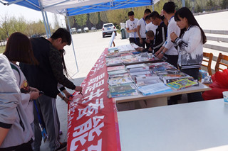 星星之火,可以燎原;點(diǎn)點(diǎn)知識,充實(shí)人生。4月23日至26日,圖書館樓前人頭攢動,醒目的宣傳標(biāo)語、宣傳展板和圖書展臺時刻提醒著讀者多讀書、讀好書、會讀書,讓更多的師生參與閱讀,讓書香飄滿校園。