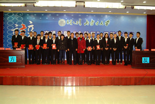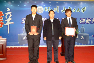 學(xué)院學(xué)工處副處長、團委副書記高飛(右)、 組織宣傳科副科長董小紅(左) |