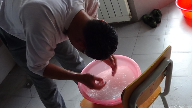 一等獎 作品名稱:一水多用 作品簡介:現(xiàn)在水資源嚴(yán)重短缺,我們應(yīng)該學(xué)會節(jié)約用水,最實(shí)用簡單的方法就是一水多用,這組照片是一個男生在宿舍的用水情況,他用一盆水洗頭,洗拖布打掃宿舍,最后才將一盆水倒掉。我們應(yīng)該向他學(xué)習(xí),學(xué)會一水多用。 土木1302班 楊蕓蕓 |