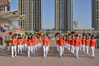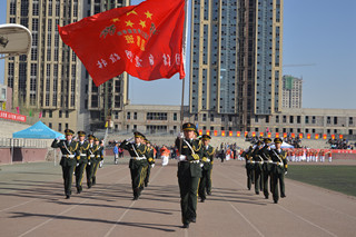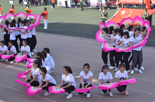 莊嚴(yán)的升國(guó)旗儀式后,學(xué)院黨委副書記、紀(jì)委書記白托婭致開(kāi)幕詞。她代表學(xué)院黨政領(lǐng)導(dǎo)對(duì)本次運(yùn)動(dòng)會(huì)的順利召開(kāi)表示熱烈的祝賀!對(duì)前來(lái)參加學(xué)院運(yùn)動(dòng)會(huì)開(kāi)幕式的學(xué)校領(lǐng)導(dǎo)、來(lái)賓、老師和同學(xué)們表示熱烈的歡迎!向參加本次運(yùn)動(dòng)會(huì)的運(yùn)動(dòng)員、裁判員和工作人員致以誠(chéng)摯的問(wèn)候!她說(shuō),一年一度的田徑運(yùn)動(dòng)會(huì)已經(jīng)成為校園生活的重要組成部分,是對(duì)全院師生員工運(yùn)動(dòng)水平的一次檢閱,是對(duì)學(xué)院群眾性體育工作成果的一次檢驗(yàn),也是對(duì)廣大師生員工競(jìng)爭(zhēng)意識(shí)、團(tuán)隊(duì)精神、頑強(qiáng)意志的一次考驗(yàn),更是全院師生員工精神風(fēng)貌的一次全面展示。在十八屆三中全會(huì)上中央提出,學(xué)校要強(qiáng)化體育課和課外鍛煉,努力促進(jìn)青少年身體健康,強(qiáng)健體魄。同學(xué)們的體質(zhì)與健康事關(guān)國(guó)家和民族的未來(lái),廣大青年學(xué)生應(yīng)該積極響應(yīng)團(tuán)中央的號(hào)召,走下網(wǎng)絡(luò)、走出宿舍、走向操場(chǎng),做強(qiáng)健體魄,健康生活的倡導(dǎo)者。學(xué)院將以此次運(yùn)動(dòng)會(huì)為契機(jī),繼續(xù)廣泛開(kāi)展“陽(yáng)光體育”,不斷加強(qiáng)校園體育文化建設(shè),營(yíng)造人人關(guān)心、人人參與體育活動(dòng)的氛圍,以健康的體魄和飽滿的熱情投入到學(xué)院各項(xiàng)事業(yè)的建設(shè)中來(lái)。相信全體運(yùn)動(dòng)員一定會(huì)本著“重在參與”的奧林匹克精神,在本屆運(yùn)動(dòng)會(huì)上賽出風(fēng)格、賽出水平、賽出成績(jī),爭(zhēng)取體育競(jìng)賽和精神文明的雙豐收。最后,預(yù)祝本屆運(yùn)動(dòng)會(huì)圓滿成功!  |  | 學(xué)院黨委副書記、紀(jì)委書記白托婭致開(kāi)幕詞 | 鮮花方隊(duì) |