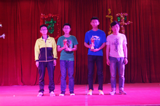 社團(tuán)十佳人物:索良遠(yuǎn)(宏武武術(shù)協(xié)會(huì))、劉飛宇、王卓明(炫酷e族漂移社)、岳兵(追星羽毛球)、劉雅琦(靚麗禮儀社)、張國(guó)帥(青娛籃球社)、李子晗、李鑫(旋風(fēng)劇團(tuán))、常美婷(足跡文苑)、梁超(鳴遠(yuǎn)藝術(shù)團(tuán))。 參加活動(dòng)的學(xué)生社團(tuán)負(fù)責(zé)人 活動(dòng)主持人 歌曲表演 舞蹈表演 標(biāo)兵社團(tuán):旋風(fēng)劇團(tuán) 瘋狂英語(yǔ)協(xié)會(huì) 宏武武術(shù)協(xié)會(huì) 榮譽(yù)社團(tuán):微塵志愿者協(xié)會(huì) 青娛籃球社 足跡文苑 魅力社團(tuán):炫酷E族漂移社 嘻哈五月天 墨緣書(shū)畫(huà)社 活力社團(tuán):鳴遠(yuǎn)藝術(shù)團(tuán) 伯樂(lè)創(chuàng)業(yè)與兼職社 靚麗禮儀社 創(chuàng)意社團(tuán):博弈棋牌社 領(lǐng)先電子競(jìng)技 社團(tuán)十佳人物