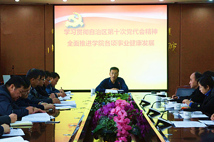 12月9日上午,學(xué)院黨委組織黨委委員、各黨總支(直屬支部)書記、機(jī)關(guān)黨總支全體黨員,傳達(dá)學(xué)習(xí)自治區(qū)第十次黨代會(huì)精神。