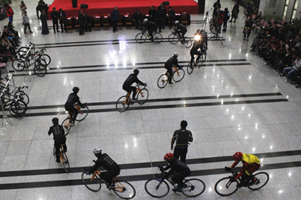 呼和浩特市體育運動學(xué)校自行車隊教練和運動員為到場來賓和觀眾講解了自行車運動的相關(guān)知識,展示了自行車騎行技巧,并與來賓和觀眾進行了現(xiàn)場互動。