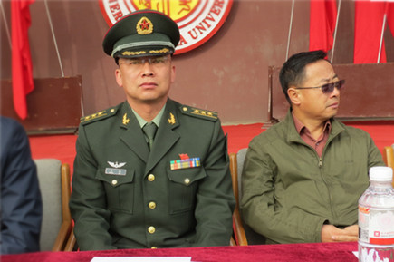 內(nèi)蒙古陸軍預(yù)備役第30師副參謀長王磊上校 (左)、學(xué)院常務(wù)副院長董平 學(xué)校黨政辦副主任、南校區(qū)管委會辦公室主任方麗英