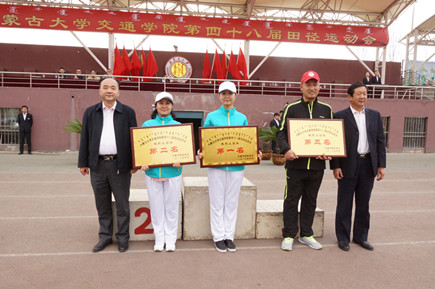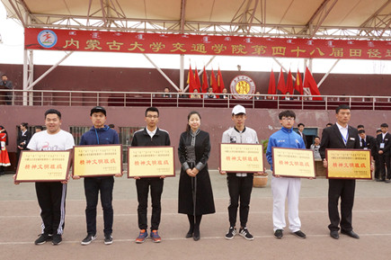 學(xué)院黨委副書記、院長柴金義為獲得學(xué)生團體總分前八名頒獎 學(xué)院黨委副書記、紀(jì)委書記白托婭為獲精神文明先進集體頒獎