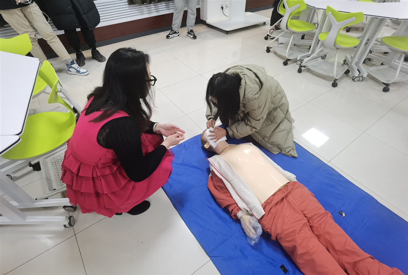 工程管理系學(xué)工辦主任(團(tuán)總支書(shū)記)、國(guó)家二級(jí)心理咨詢師、主管護(hù)師:張雪松現(xiàn)場(chǎng)輔導(dǎo)師生心肺復(fù)蘇