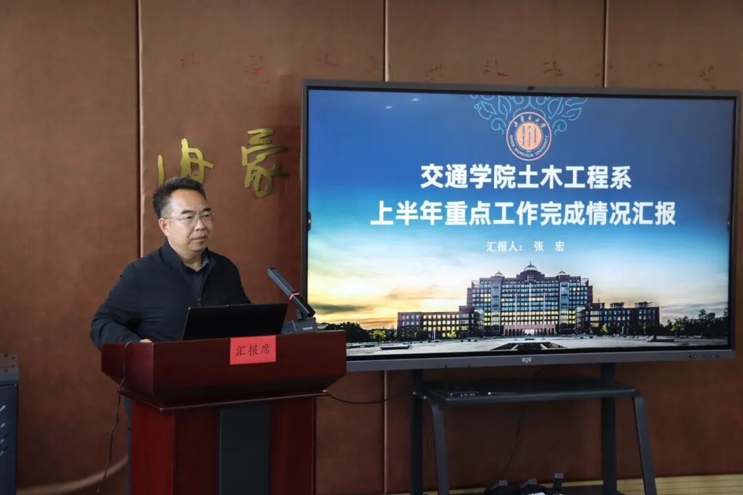 會(huì)上,土木工程系主任張宏、交通運(yùn)輸系主任李成兵、機(jī)械工程系主任李春芾、研究生處處長李國棟聚焦2025年辦學(xué)實(shí)力核心指標(biāo)任務(wù)的推進(jìn)與完成情況及下半年工作重點(diǎn),分別作了匯報(bào)交流。全面總結(jié)了2025年度上半年各項(xiàng)工作成效、系統(tǒng)梳理了存在的問題、科學(xué)謀劃了下半年工作思路,院領(lǐng)導(dǎo)逐一進(jìn)行了點(diǎn)評(píng),提出了意見建議,進(jìn)一步增進(jìn)了共識(shí),凝聚了合力,為下一步開展工作奠定了良好基礎(chǔ)。