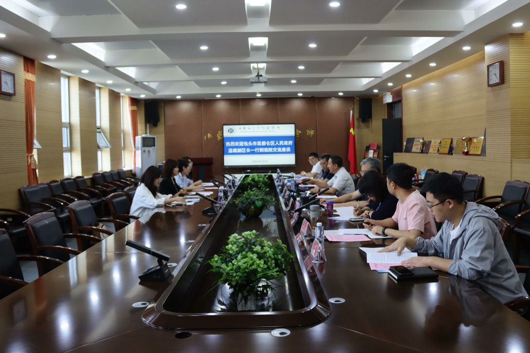 璐副區(qū)長首先對學(xué)院的熱情接待表示感謝,并簡要說明了本次調(diào)研的主要目的,詳細(xì)介紹了昆都侖區(qū)的經(jīng)濟(jì)社會發(fā)展概況、產(chǎn)業(yè)布局及重點(diǎn)人才引進(jìn)政策。希望以此次交流為新起點(diǎn),共同探索產(chǎn)學(xué)研用一體化合作新模式。期待雙方在資源、人才、技術(shù)等方面實(shí)現(xiàn)優(yōu)勢互補(bǔ),共同助力院地雙方事業(yè)高質(zhì)量發(fā)展高水平提升。